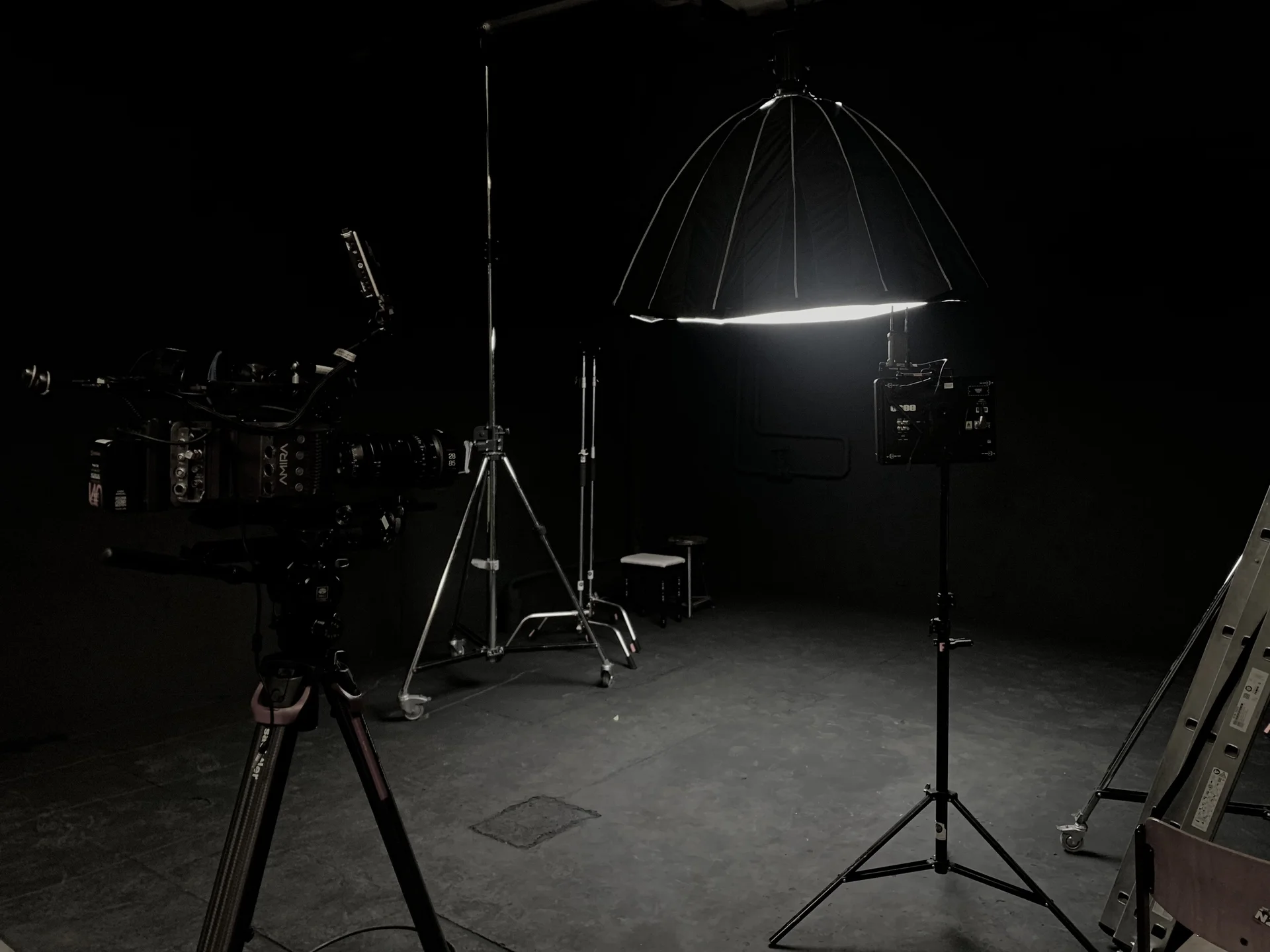 Flexibles Black Room Studio für Musikvideos, Portraits und Kunstproduktionen.